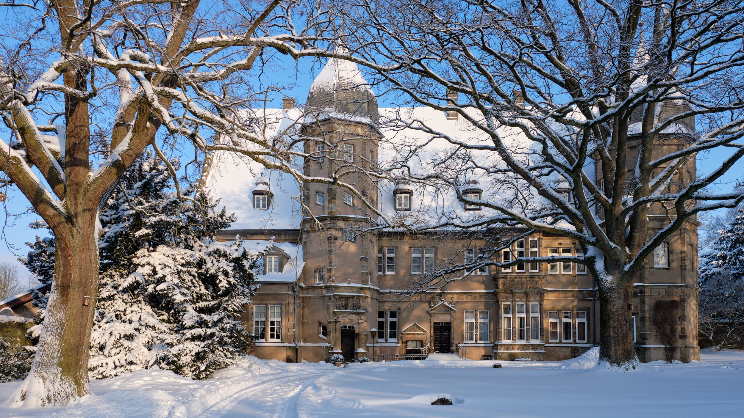 Unter anderem können von den Bäumen Äste abbrechen (auch bei Windstille), und es besteht Rutschgefahr, weil der Schlosshof im Winter nicht geräumt wird. Bei Sturm oder Glatteis darf der Schlosshof nicht genutzt werden. - Keine motorisierten Fahrzeuge.